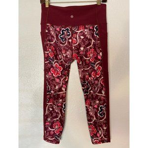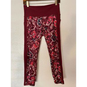 Tags-floral leggings, athleta leggings, high-rise leggings, pocket leggings, burgundy leggings, workout pants, yoga leggings, patterned leggings, fitness wear, stretchy leggings, breathable fabric, women's leggings, activewear