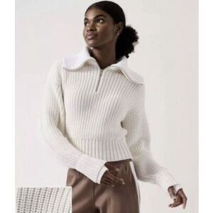 Athleta Alder Chunky Cable Knit Sweater Cream Sz L