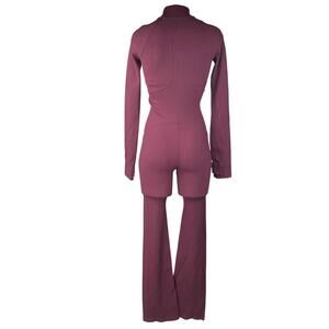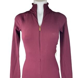Athleta X Alicia Keys Goddess Purple Red Ribbed Long Sleeve Zip Up Athletic Bodysuit Jumpsuit