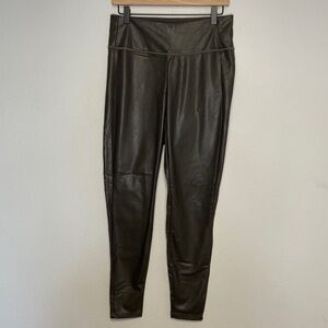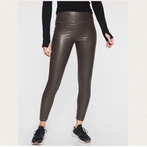 Excellent condition Athleta high rise faux leather leggings in olive green.