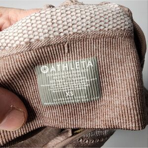 This seamless tank features adjustable spaghetti straps, removable padded cups, and a mild compression level in the chest area. The solid sugarplum color adds a pop of fun to your gym and training sessions, low-impact workouts, or dance fitness classes. This Athleta Allegro Support Tank Top is machine washable and easy to care for, making it a must-have in your activewear collection.