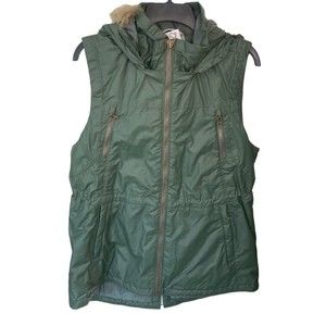Athleta Alpine Air Vest Size L Hooded Faux Fur Trim Green