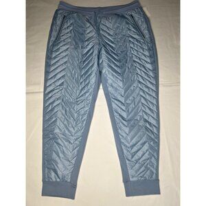 These Athleta jogger pants, in an elegant light blue, are crafted from a recycled nylon and polyester blend. Designed with a quilted pattern, they offer not only style but also functional warmth. Featuring a drawstring waist and zippered pockets, they provide convenience and comfort for your daily adventures.