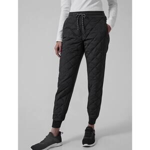 Athleta Après Ski Pants, Athleta Down Joggers, Women’s Goose Down Pants, Athleta Black Insulated Pants, Quilted Ski Pants, Winter Outdoor Joggers, Athleta 6 Tall Pants, Athleta Warm Pants, Cold Weather Activewear, Athleta Hiking Pants