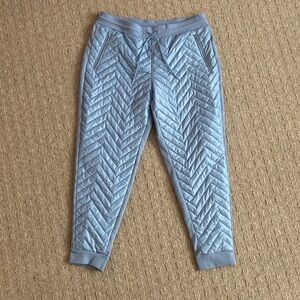 Athleta Apres Ski Down Quilted High Rise Jogger Pants in Heron Blue Sz 16