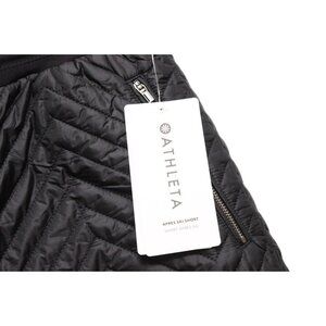 The Athleta Apres Ski Shorts in size 8 are designed for outdoor activities such as hiking and skiing, with a relaxed fit for added comfort. Made of 100% nylon material, these black shorts are windproof, insulated, and water resistant, making them ideal for colder seasons like winter and fall. Featuring a 4-inch inseam, pockets for convenience, and a drawstring waist, these athletic shorts by Athleta are perfect for active women looking for durable and functional activewear.