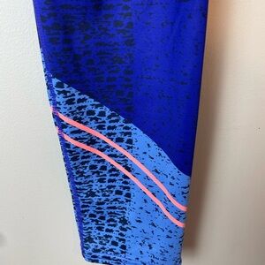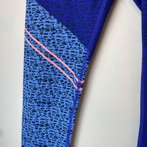 Athleta Asym Camo Sonar 7/8 Leggings Cobalt Blue Stripe Pocket Size Small