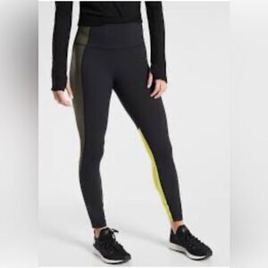 Athleta Asym Colorblock Tight supersonic neon and olive small