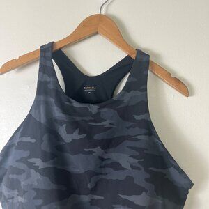 Women’s athletic tank bra from Athleta! Lightweight and stretchy material great for any workout or outfit. Conscious Crop style, camo pattern, tank top, long sports bra, padded, racerback straps. Great used condition!