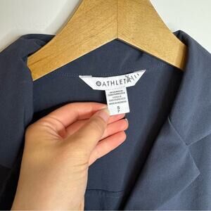 Athleta Avenue Romper Navy Blue Stretch Drawstring Collared Athletic Comfort S