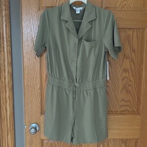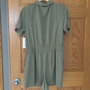Stylish romper with short sleeves. Features a classic collar and comfortable fit.