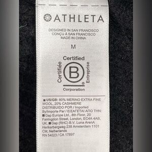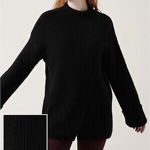 Athleta Azalea Black Merino Wool Cashmere Ribbed Knit Tunic Sweater Size Medium