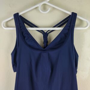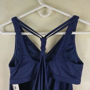 Stylish navy bikini tankini or athletic top. Features unique back tie design. QuickDry. Reposting because I need to size up because I’m a D. I bought the wrong size for me. Really cool top which I bought to wear as an athletic top but will buy the next size up. You will love this top!!