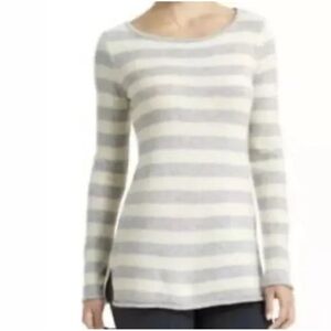 Athleta Backcountry Cashmere Gray Ivory Striped Sweater Crewneck Womens Large