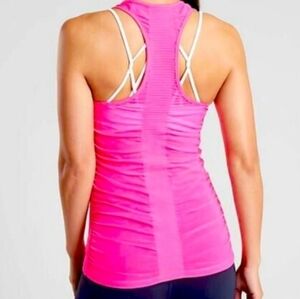 Item: Women's Bakasana Racerback Ruched Mesh Tank Top Pink
