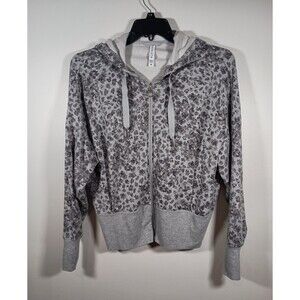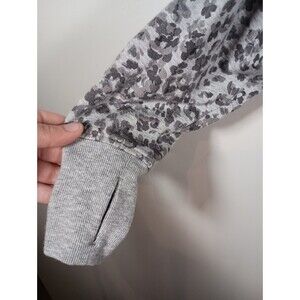 Athleta Balance Gray Full Zip Leopard Elastic Waist Thumbholes Hoodie Size M