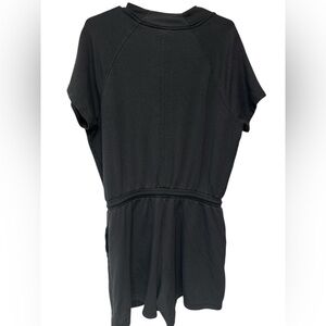 Athleta Balance Romper Shorts Black One Piece Short Sleeve. Size large. Vneck. Drawstring waist.