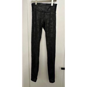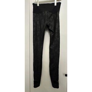 Athleta Ballet Stirrup Leggings, Black on Black Floral, Ruched Leg, Size Small T