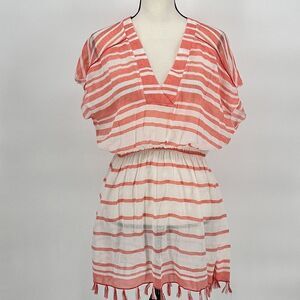 Athleta Beach Cover Up Tassel Trim Stripe Coral & White Size Xsmall