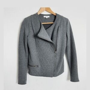 Athleta Belvedere Jacket Moto Style Grey Fleece Lined Asymmetrical Zip Front Size Small