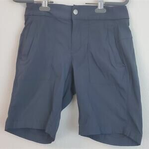 Snap and zipper closure. Zipper front pockets. Patch back pockets. Stretchy waist. Waist 13.5". Inseam 9". Rise 9". MEASUREMENTS ARE APPROXIMATE.