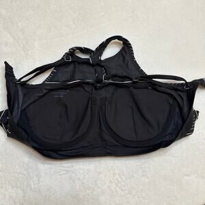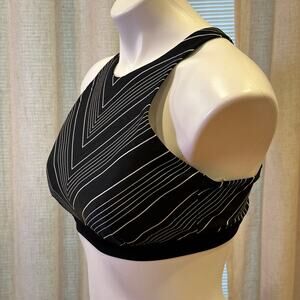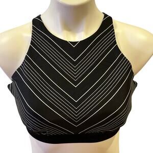 Athleta Bikini Top sz 34D/34DD Black Stripe Bikini Top High Neck Strappy Back