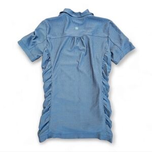 Athleta Birdie gray side ruched, short-sleeved golf polo shirt.