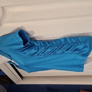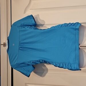 Athleta Birdie Polo Shirt 426902 Blue Ruched Athletic Top Size S EUC