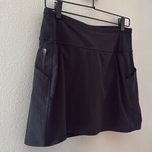 Black Athleta skort with biker shorts. Semi-fitted with high rise waistband that holds you in! Pockets on side and zipper pocket in back. Excellent condition!!