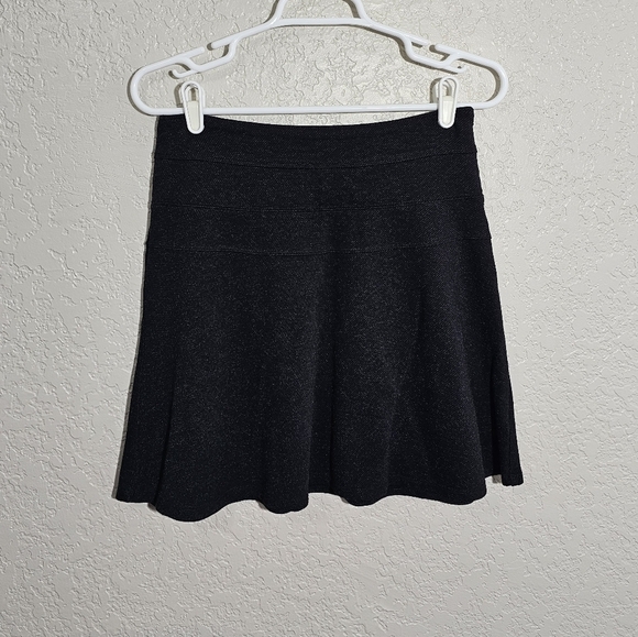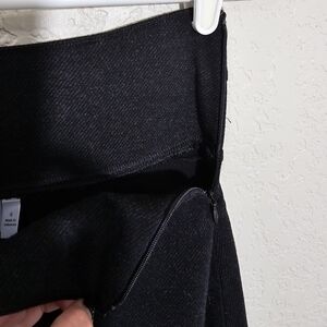 Pre-owned Athleta mini skirt, size 4. It's made of a rayon/nylon/polyester/spandex blend fabric that's lightweight with just a little stretch, has zippered pocket at the back of the waist, and zips up the left side.