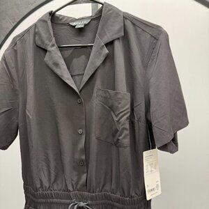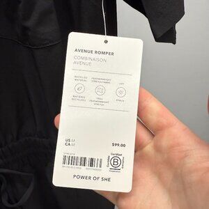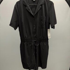 Women's Athleta black avenue romper. NWT! Size M. Retail: $99. Pit to pit: 19.5". Total length: 34". Sleeve length: 4.25". Waist flat: 15.75". Inseam: 3.25".