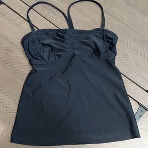Athleta Black Bandeau Built in Bra Ruched Front Tankini Swim Top