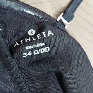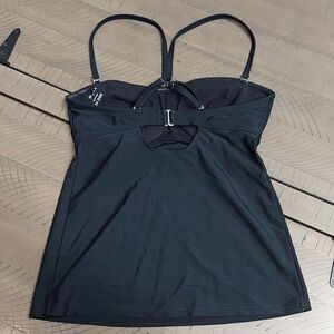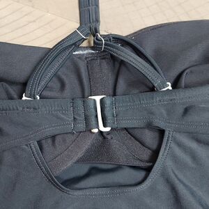 Athleta Black Bandeau Built in Bra Ruched Front Tankini Swim Top Sz 34 D/DD