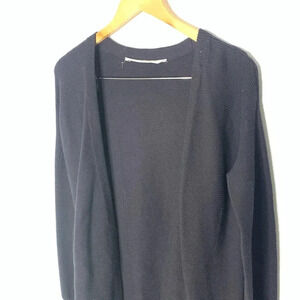 Athleta Black Cardigan long open xxs VGUC Light ribbing pattern to material See pic for length No thumb holes Open front