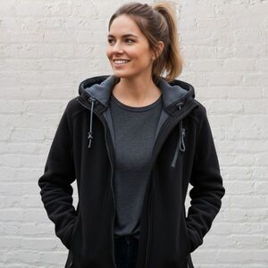 Athleta Black Fleece Jacket Hooded Full Zip Pockets Active Cozy M ๐ค