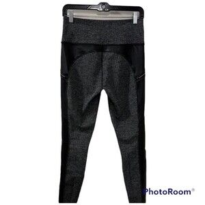 Athleta Black Gray Luxe Drifter Faux Leather Sides Zip Pockets Leggings Sz Small