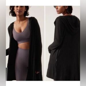 Athleta Black Harmony Wrap Cardigan Hooded Lightweight Women's Size XXS