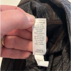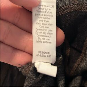 These Athleta joggers feature a stylish dark heather black color and a wide flat waistband for added comfort and support. Designed for an athletic fit, they are made from a stretchy fabric that allows for ease of movement, making them ideal for workouts or casual outings.