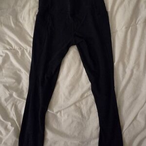 These black Athleta leggings are made of comfy, stretchy stuff, so they fit great. You can wear them to work out or just chill, and they look cool with their dark black color. They're super flexible and stylish, you'll love them.