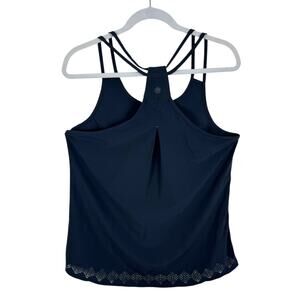Athleta Black Lightweight Strappy Racerback Eyelet Hem Athletic Tank Top Size L