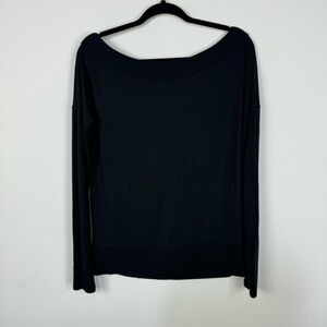 Athleta Black Long Sleeve Boat Neck Basic Casual Top Minimalist Capsule Wardrobe
