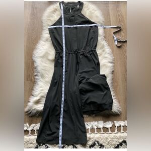Athleta Mercer Wide Leg Cropped Halter Style Jumpsuit Romper Black Cut Out Back athletic activewear summer cool vacation travel minimalist