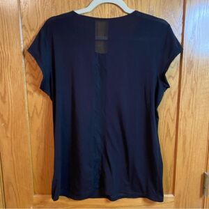 Black tshirt with mesh panel down center of the back and around sleeves.