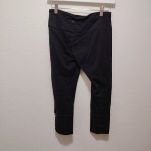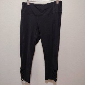 Athlea black mind over matter athletic leggings. Capri / crop length. Cut out strappy ankle.