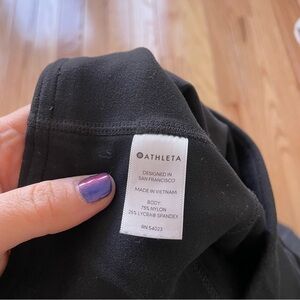 Athleta Niyama Leggings 7/8 Length Laser Cut Tights Black. Leggings have a laser cut detail on the front and back of the legs (see pictures). Pockets on both sides of the leggings and hidden key pocket in the waist band. Style 353777-00. In excellent condition.