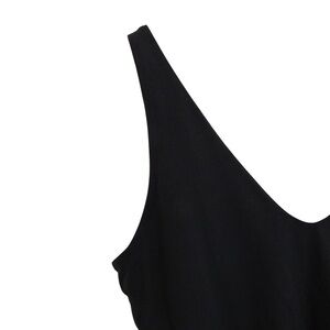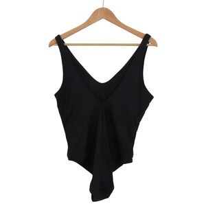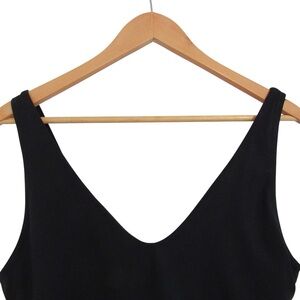 Athleta Black One Piece Swimsuit Large Petite Double V-Neck Missing Padded Cups