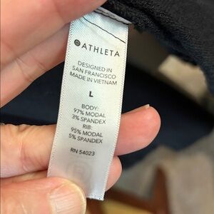 Elegant black cardigan with open front. Ideal for layering. Size Large from Athleta. Front pockets and thumb holes. Roomy and so cozy! Light signs of wear as seen in pictures.
