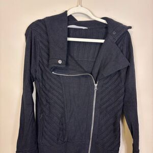 Excellent condition Athleta Black Oversized Collar Zip Up Nylon and Wool Sweater Medium