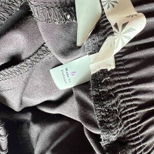 Athleta Black Parachute Pants Elastic Waist Band Front Zippered Pockets Two Open Back Pockets Made from Recycled polyester Sz 6 Measurements (lying flat): Waist: 14" (unstretched) Rise: 8 1/2" Inseam: 28"
