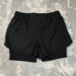 Athleta Black Racer 2 in 1 Lined Running Workout Shorts Athletic M Gym